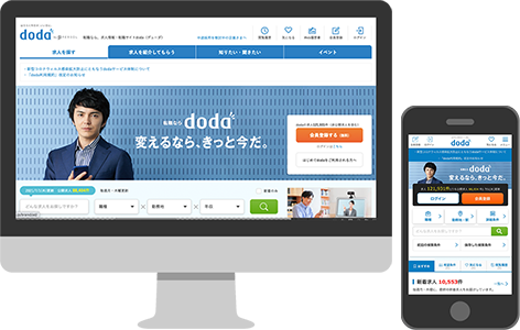 登録者数は業界最大級。dodaでは、求人情報サービス・人材紹介サービスを同ブランドで提供しているため、幅広い業種・職種の転職希望者にアプローチすることが可能。